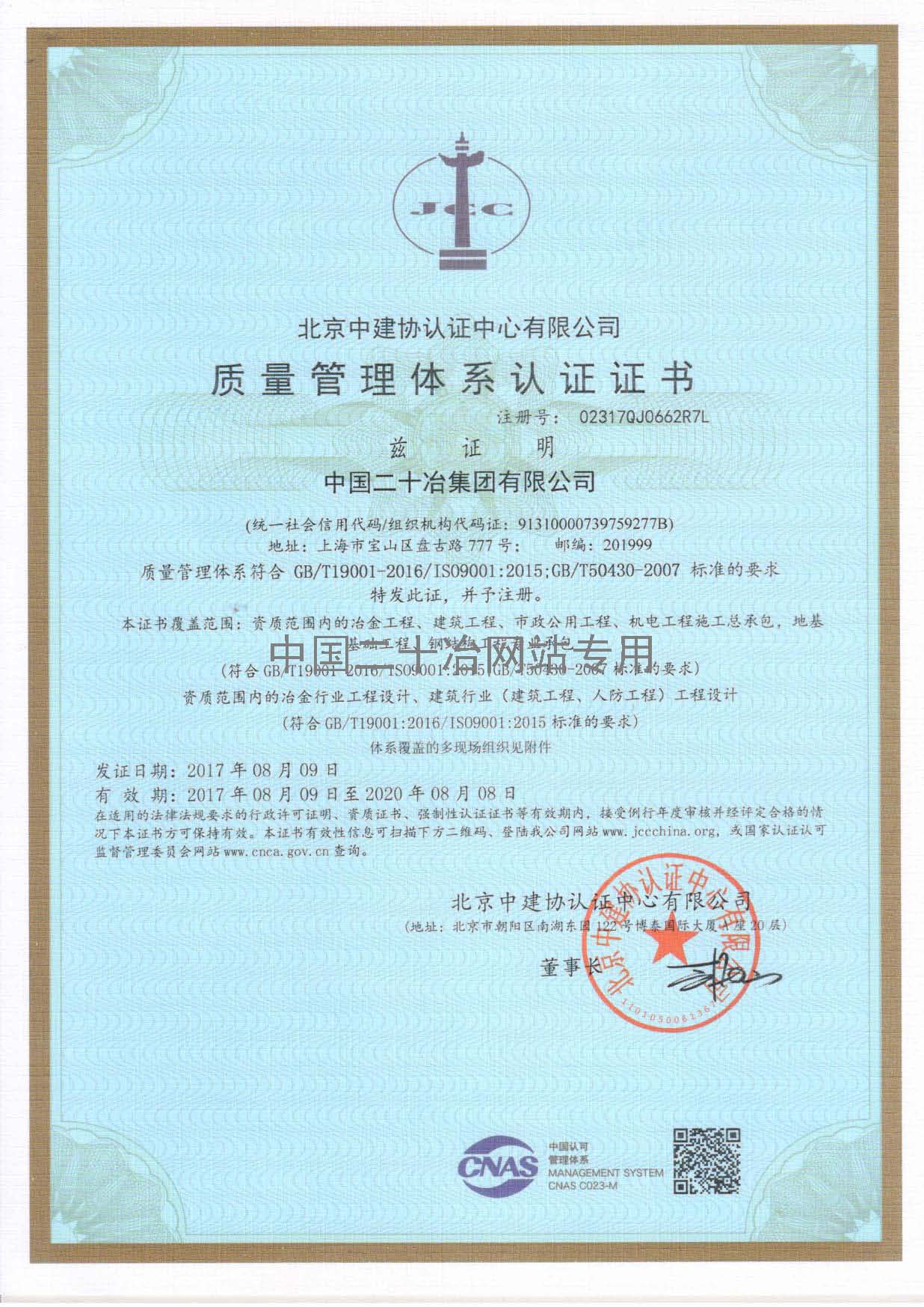 Quality Management System Certificate