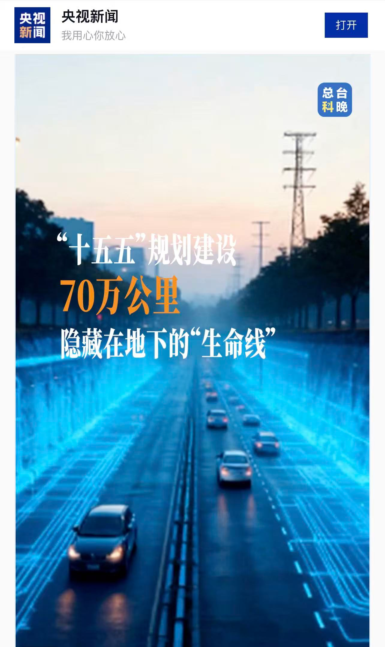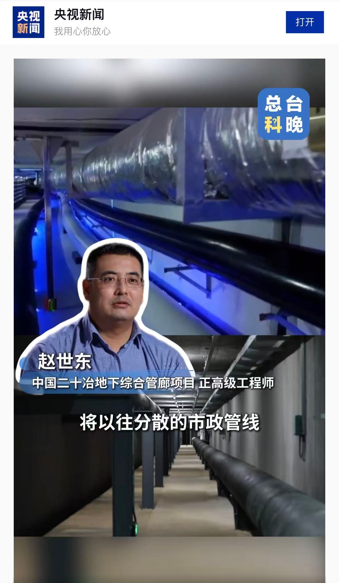 11月7日,央視新聞客戶端以《告別“拉鏈路”!一起了解城市地下的“生命線”》為題發布專題報道,通過視頻鏡頭深入探秘中國二十冶承建的深圳阿波羅未來產業城綜合管廊項目,系統解讀地下綜合管廊如何破解城市“馬路拉鏈”頑疾,并結合“十五五”規劃中70萬公里地下管網建設目標,展現中國城市基礎設施升級的創新實踐。