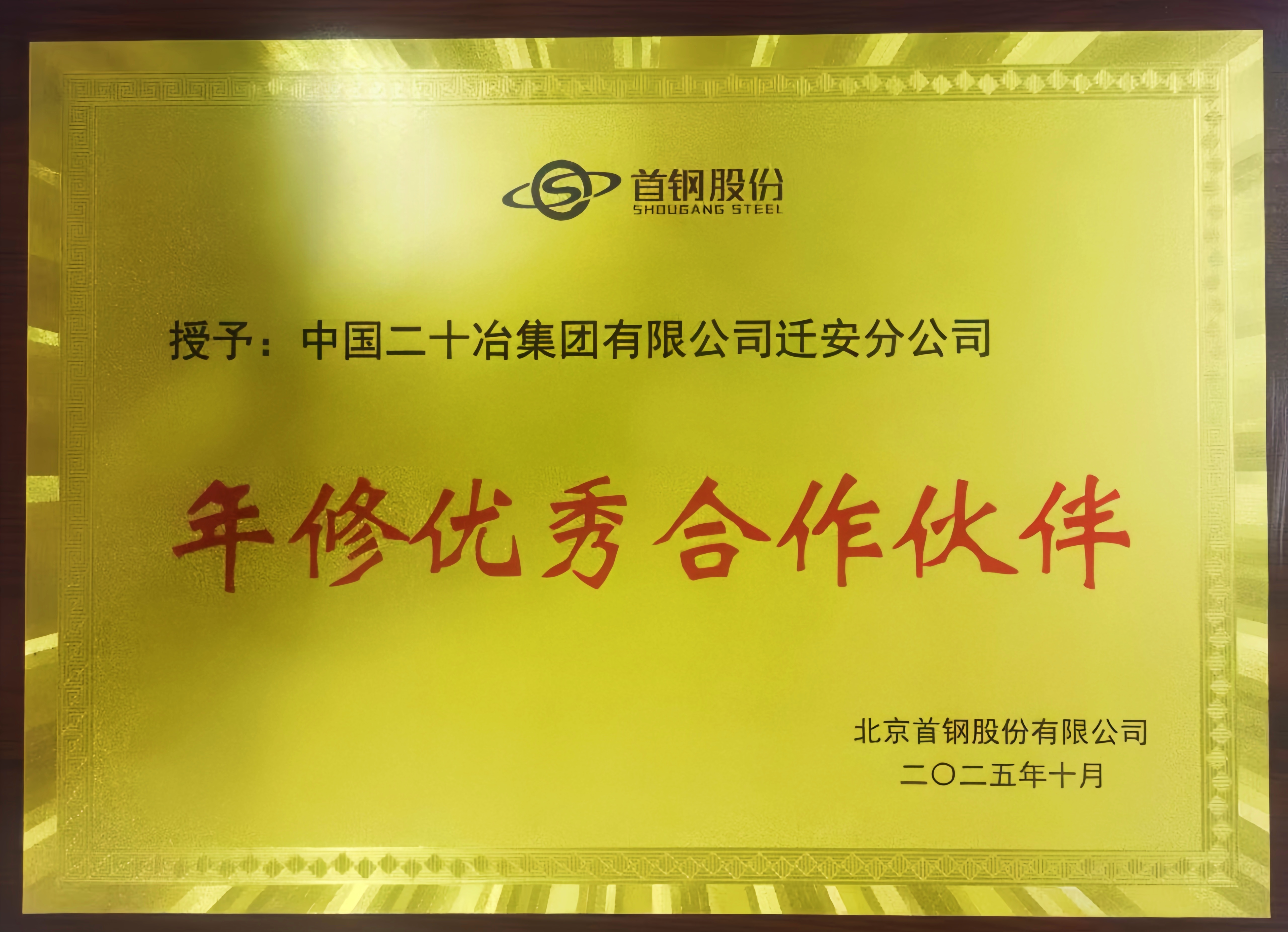 此次獲評“年修優秀合作伙伴”,體現了首鋼股份對項目團隊專業能力與服務品質的高度認可,更印證了中國二十冶憑借卓越實力“干一項工程、交一方朋友、站穩一方市場”的品牌承諾。